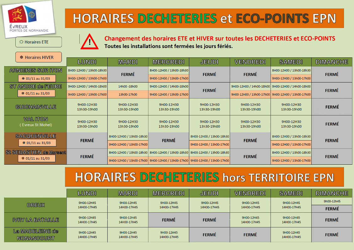Les déchèteries - Notre commune d'Angerville la campagne dans l'Eure
